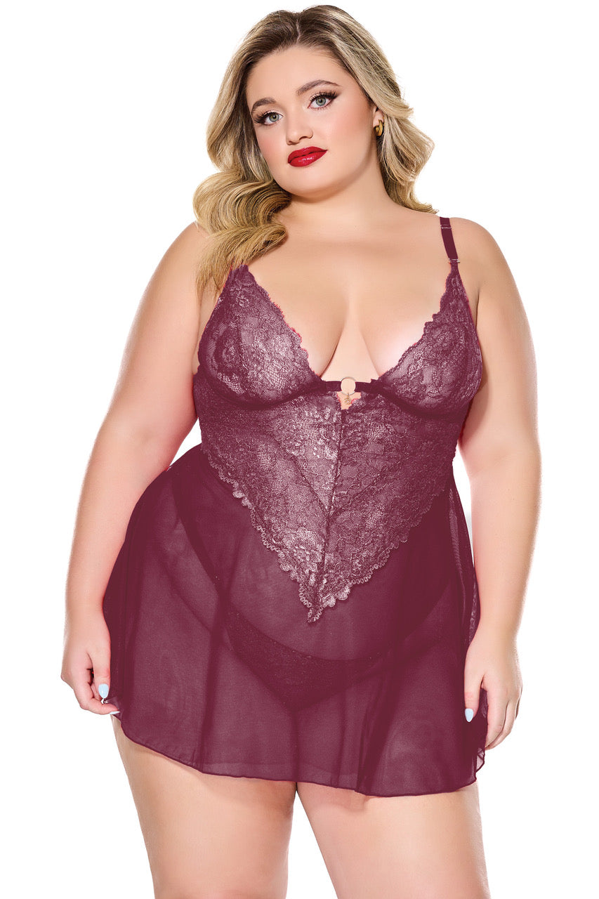 Babydoll & Thong Burgundy